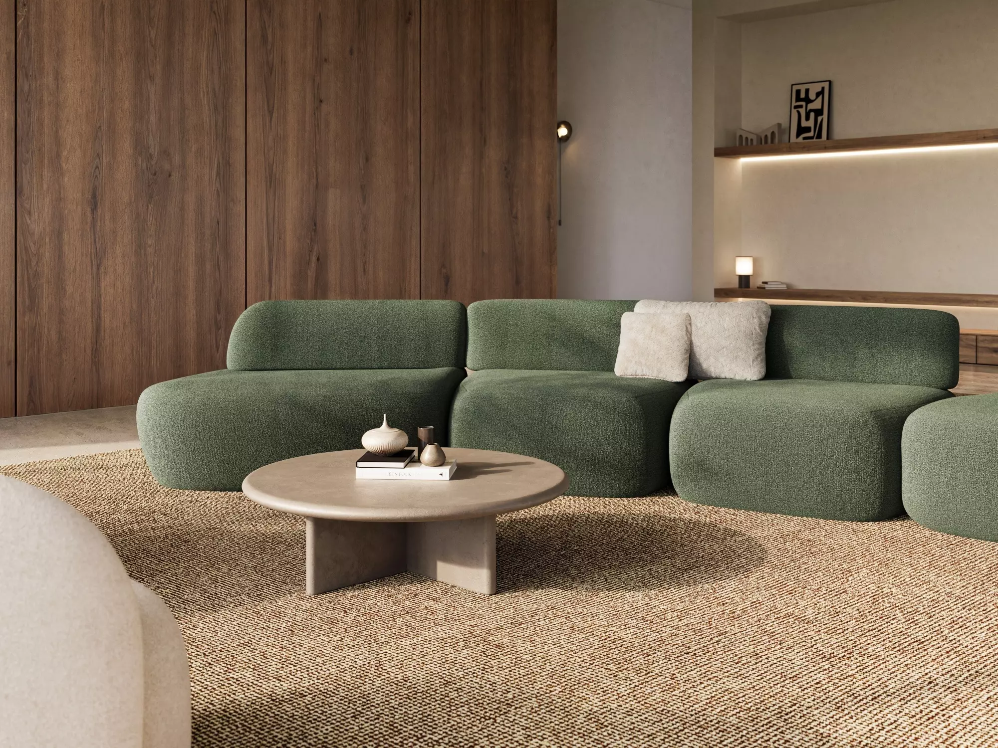Kumo was born from an exploration of softness as a spatial concept. Inspired by the Japanese word kumo, meaning “cloud,” Ameline envisioned a sofa that appears to float within a space, combining visual lightness with deep, enveloping comfort. Rather than imposing a rigid geometry, she chose an organic, irregular form that feels natural, intuitive and welcoming — much like a cloud gently shaping itself around its surroundings.
